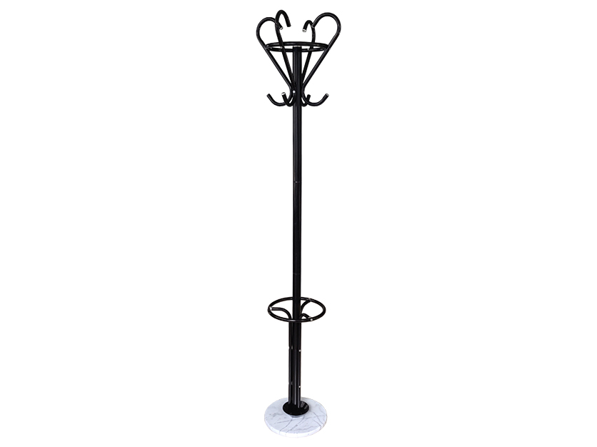 Καλόγερος ρούχων μεταλλικός μαύρος με μαρμάρινη βάση και ομπρελοθήκη.