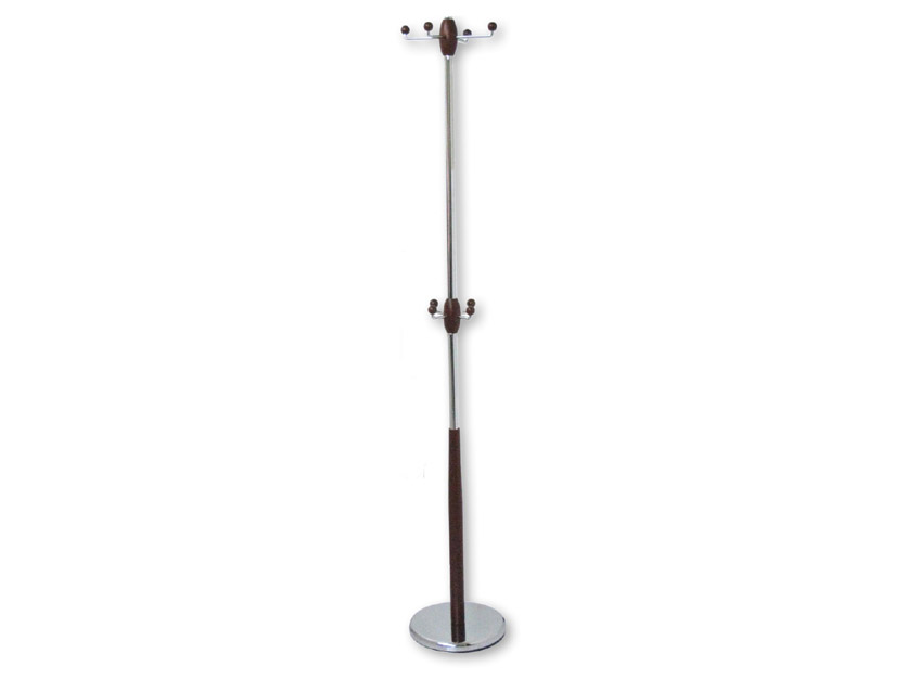 Καλόγερος ρούχων μεταλλικός με επεξερχασία βαφής χρωμίου και ξύλο σε καρυδί χρώμα.
