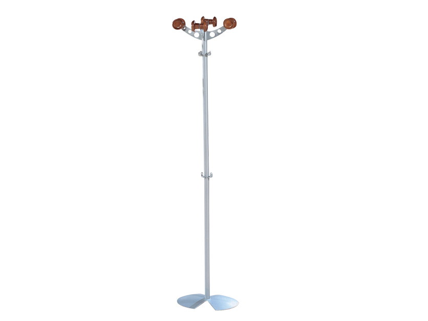Εχει βαριά μεταλλικά βάση για ιδιαίτερη σταθερότητα με βαμμένο κάλυμμα στο ίδιο χρώμα με τον κορμό. Τα κρεμαστράκια καταλήγουν σε ξύλινα άκρα χρώματος καρυδί.
